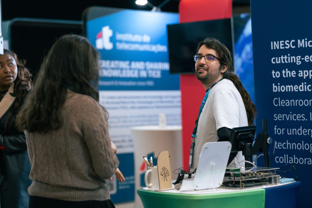 Throughout the event, INESC MN was represented at its exhibition stand by members of the INESC MN research team, including PhD students and research collaborators, who engaged with participants from academia, industry, and the wider innovation ecosystem. These interactions provided an opportunity to share ongoing research activities and to exchange perspectives with a diverse audience.
